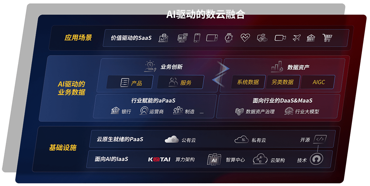 以尊龙鲲泰全国产化计算产品帮助金融行业客户构筑数字底座;以丰富的AI和数云产品及方案,,,,保障数据安全,,,,挖掘数据价值,,,提升服务品质
